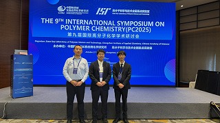 左から、Outstanding poster award 受賞の吉田(M2)、宮地(高分子M2)、佐藤(D2)。以前私たちの研究室に短期留学していたWang君(右)が、Best outstanding poster award 受賞!