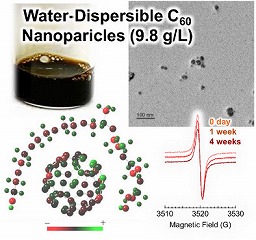 Ultrasonic Formation of Highly Concentrated Aqueous Dispersion of Fullerene-Polymer Nanoparticles by Charge Transfer
